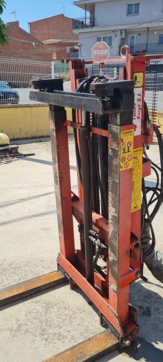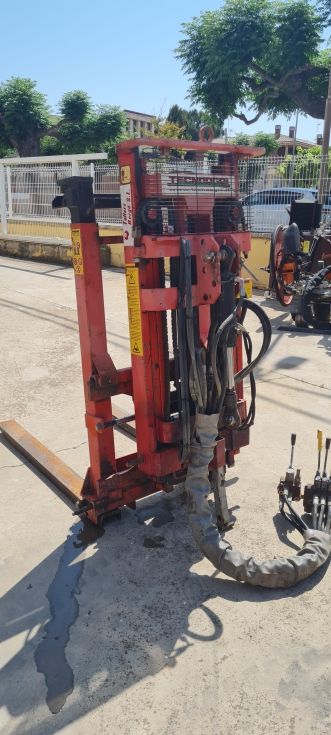 | Detalles | Elevador hidralico de ocasion marca TECNOAGRI, el equipo es un mástil de tres cuerpos que se queda muy bajito, levanta hasta 2'50 mts de altura 1000 kg. de carga, ideal para tractores de baja potencia, tambien esta equipado con la cuarta función de prensa hidraulica. El transporte e iva no esta incluido en el precio. Realizamos envios a toda España.  |