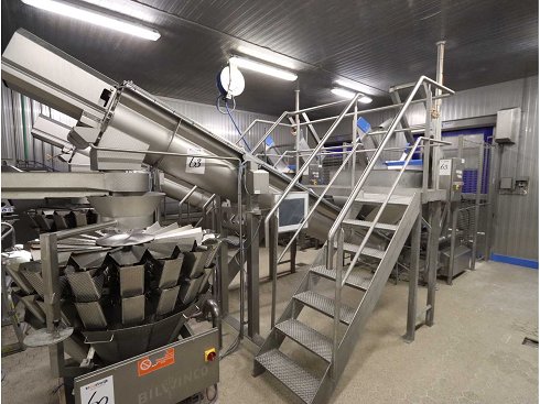 Equipado con cinta transportadora de cadena de entrada, ancho de vía de 850 mm, longitud 2000 mm, incluyendo transportador de tornillo del ascensor con tolva receptora, tornillo Ø 400 mm, longitud del tornillo 4500 mm, altura de salida 1700 mm, bunker de apertura de entrada aprox. 1100x1300 mm, sin plataforma ni escaleras |