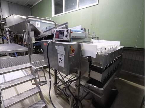 Compuesto por: basculador con cinta transportadora por debajo, ancho 800 mm, longitud 3600 mm, apertura tolva 2700x1800, pesadora multilínea "Jasa", tipo 2009PCB, 9 líneas, rango de pesaje 10000 gramos, penetración del suelo, plataforma y control no incluidos |