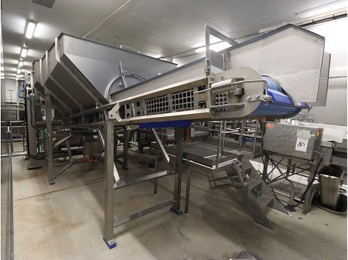 Equipado con cinta transportadora de paso inferior, ancho 800 mm, longitud 5000 mm, apertura tolva 3100x2000, paso por suelo, plataforma y dirección no incluidos |