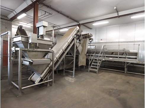 Consta de: transportadora de tornillo elevador, cinta transportadora elevadora, línea de clasificación con rodillos, línea de clasificación con tamiz de 10 órdenes, dispositivo de inclinación de contenedores, totalmente equipada con diversas cintas transportadoras y control central, superficie utilizada 9000x13500 mm |