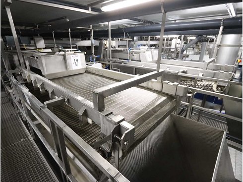 Consta de: 2x cinta transportadora tamiz, ancho de trabajo 750 mm, ancho de trabajo con mesa de clasificación con rodillos 1500 mm, 2x depósito de acero inoxidable con bomba "Cornel", tamaño del contenedor 1580x1060x1170 mm, sin plataformas y fondo de rejilla |