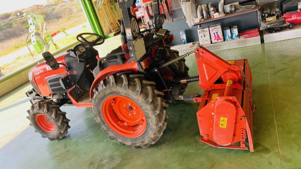 | Detalles | Tractor Kubota modelo B2530, motor Kubota de 25 cv y 3 cilindros, doble tracción, 3x3 velocidades con inversor, arco de seguridad trasero abatible, 2 distribuidores de doble efecto. Tiene 1.000 horas de trabajo. Incluye en el precio rotavator Kubota y cultivador. |