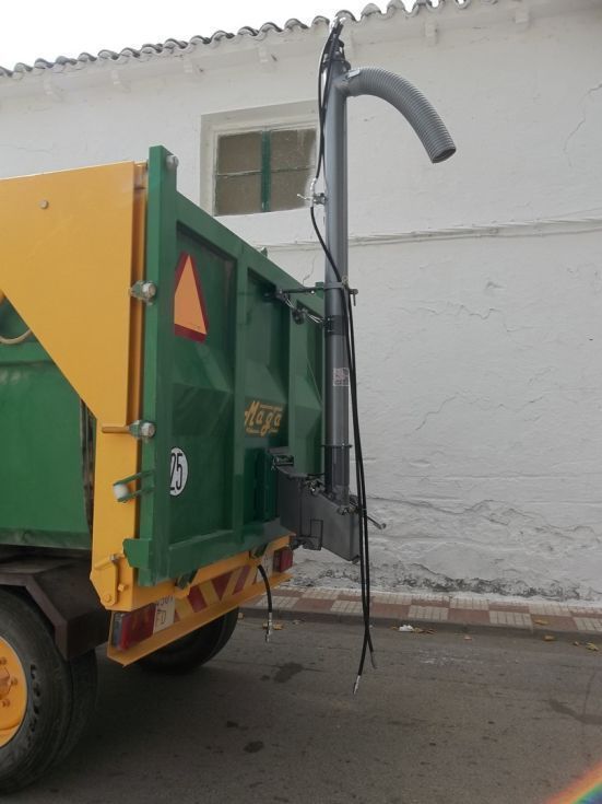 | Detalles | Sinfín transportador de grano acoplado a remolque y articulado. Desarrolla gran altura, ideal para descarga en sembradoras neumáticas. Montado con motores y válvulas que evitan los atasques y paradas de motores. Sistema de fácil limpieza a través de las distintas trampillas instaladas en cada tubo. Elevación con cilindro hidráulico para evitar roturas de cable y sus consecuencias. El montaje se realiza fácilmente sin necesidad de grandes esfuerzos y posibles accidentes. Diametro 160 con motores reforzados La cadena solo sirve para facilitar montaje y desmontaje del sinfín, |