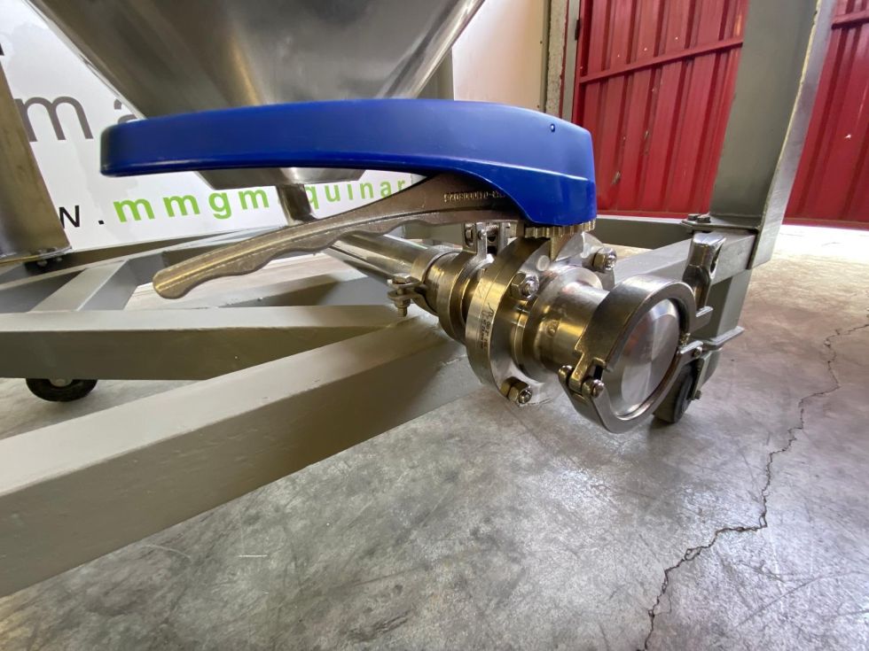 | Detalles | Depósitos contenedores para 1250 litros con fondo cónico y bancada. Boca de hombre en la parte superior.