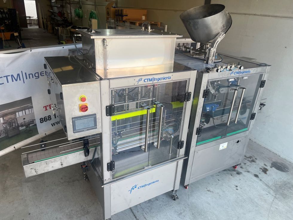 | Detalles | envasadora-llenadora por bombas, contruida en inox 304, cinta de cadena de charnela 152mm, boquillas de dosificado independientes. cuadro electrico con pantalla tactil para ajustar parametros se fabrica bajo pedido |