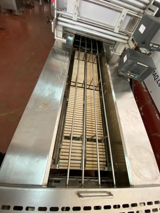 Características: Construida en acero inoxidable Termoformadora film flexible Opción de trabajo en solo sellado o vacío Con centrador de macula para film impreso Con opción de regulación de cantidad de vacío Con regulación de temperatura, tiempo de formado y sellado (dependiendo del tipo de film) Con recogedor de film sobrante Con 3 cuchillas transversales Con ruedas para fácil transporte Necesita recirculación de agua para refrigerar los moldes |
