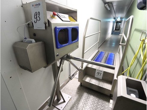 Consiste en: unidad de limpieza de cepillos de la suela y torniquete con desinfección de manos |