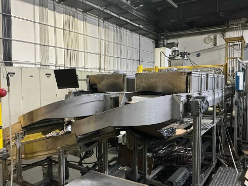 2 partes de cinta transportadora: aprox. 6.000 mm LG, 600 mm de ancho, 1 parte de cinta transportadora, aproximadamente 2.800 mm de LG, 1.000 mm de ancho