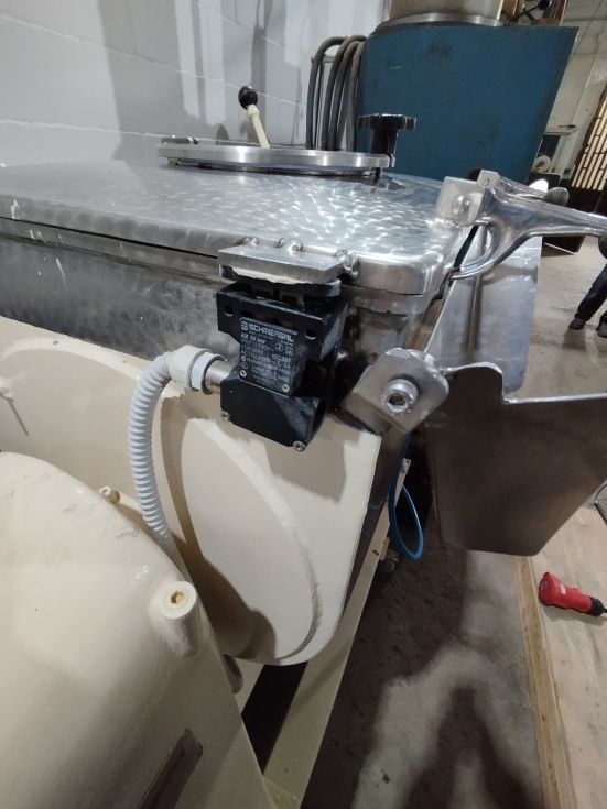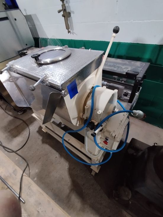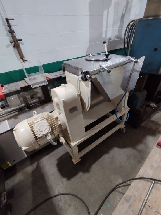 | Detalles | Mezclador de bandas de 100 litros. Partes en contacto con el producto en inoxidable. Tapa abatible con trampilla de inspección. Palanca para volcado y canal lateral para vaciado una vez se ha volcado el mezclador. Con protecciones de seguridad para detectar si la tapa está abierta. Montado sobre estructura con ruedas. Funciona. Ideal para restaurar y colocarlo en el hall de una empresa química, farma o alimentaria. |