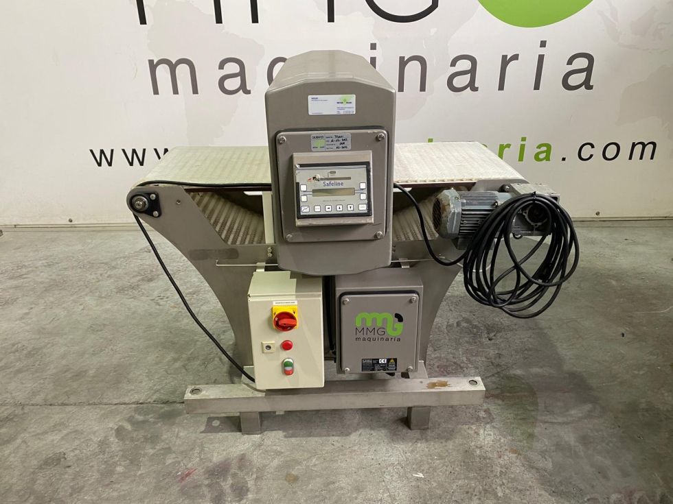 Detector de metales SAFELINE con cuadro tipo botonera y parada de emergencia, construido en chasis de acero inoxidable.