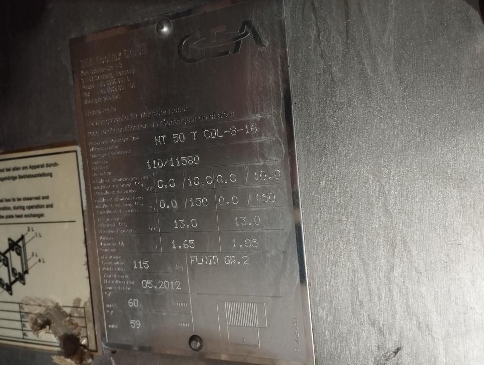 Intercambiador de placas ALFA LAVAL con 16 placas modelo NT50T COL-S-16. Construido en el año 2012.