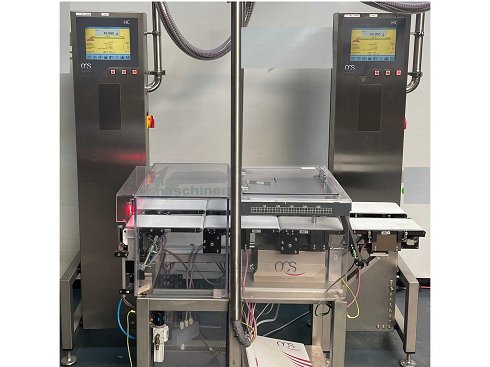 Este pesador automático de doble carril está diseñado para marcar casillas plegables u objetos similares para un peso especificado. Los objetos a comprobar se introducen mediante un Cinta de alimentación (300 x 150 mm) desde la derecha de lado. Los objetos se transfieren individualmente hasta la cinta de pesaje (300 mm de largo x 150 mm de ancho) y atravesar una barrera de luz. El valor real registrado por la celda de carga se evalúa según el ajuste especificado de la puntos de trabajo; Objetos reconocidos como defectuosos son expulsados por elevando neumáticamente el Cinturón de descarga. Los objetos que se consideran buenos son transportado a través de la cinta de descarga (300 x 150 mm) hacia el lado izquierdo de la escala. El rango de pesaje está entre 10 y 100 g, y el rango nominal de precisión se especifica como e = 0,1 g. |