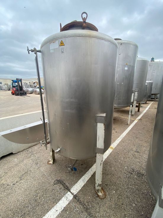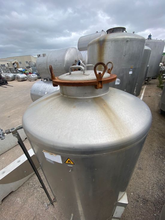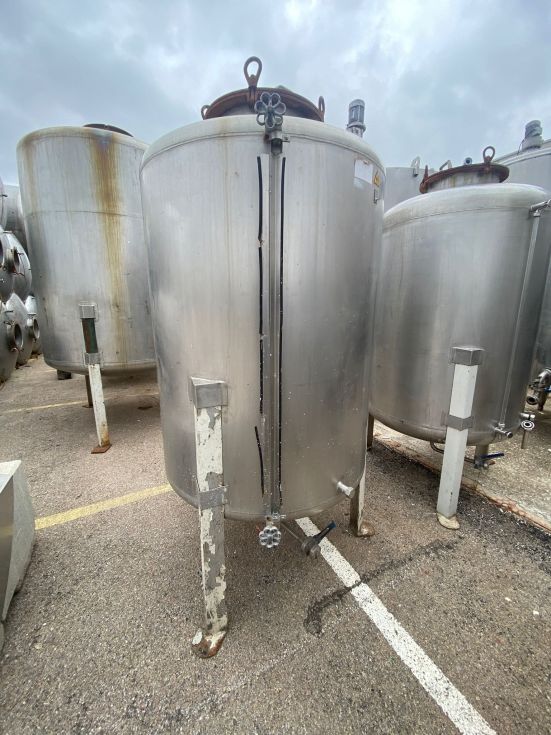 | Detalles | Depósito sencillo fabricado en acero inoxidable con una capacidad de 1250 litros, fondos Kloper, tanto superior como inferior, con boca de hombre superior y tres patas de apoyo.