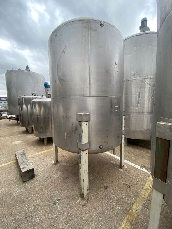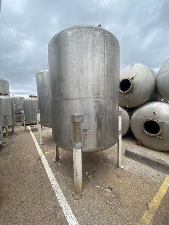 Depósito sencillo fabricado en acero inoxidable con una capacidad de 3600 litros, fondos Kloper tanto superior como inferior, con boca de hombre superior y tres patas de apoyo.