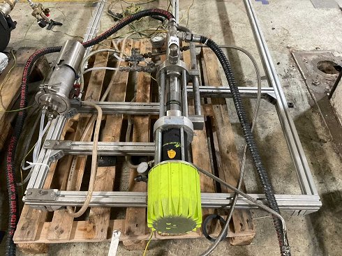 Función: Una bomba dosificadora de pistón de alta presión o sistema de prueba/transporte para líquidos, con manómetro (manómetros) y cremallera |