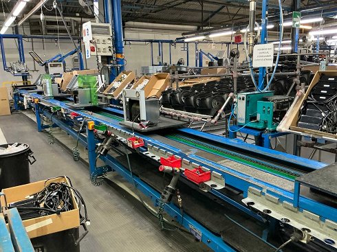Línea de montaje manual Línea de montaje manual que incluye áreas de almacenamiento con componentes de ensamblaje, varios bancos de trabajo para montaje manual y un sistema hidráulico para el suministro de herramientas de alimentación. Incluye una unidad de pruebas eléctricas INSATEC Clare HAL 104. No se incluyen estanterías dinámicas / racks de flujo. Dimensiones totales aproximadas (L × O × H): 12.000 × 2.400 × 2.400 mm. Funcionalidad no probada. Este artículo se entrega cargado en camión. Los costes de desmantelamiento y carga se especifican como costes adicionales.