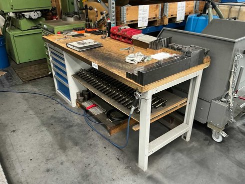 Incluye 1 armario de cajones submontado con 6 cajones, varias herramientas manuales, herramientas de medición, bloques de calibre, bolas de prueba, piedras de esmerilado y pulido y portaobjetos |