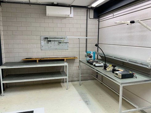 Consiste en 1 mesa de trabajo con la balda inferior Y 1 mesa de trabajo con lámpara de aumento montada en superficie y portadibujos No se incluyen muchas cosas en las mesas de trabajo |