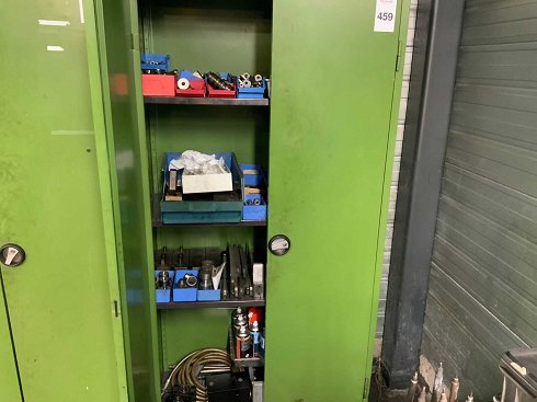 Equipado con 3 estanterías. El contenido consistía, entre otras cosas: varios arbustos centradores y placas de acero.