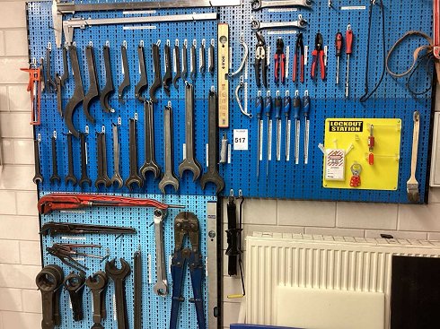 Sistema de pared equipado con 6 placas de pared. Las herramientas incluyen: -llaves de máquina de Gedore en varios tamaños, que van del 27 al 65. -llaves de gancho de Gedore en varios tamaños, aumentando de 25 a 220. - calibre de taller de Mitutoyo y acero inoxidable tamaño 600 mm y tamaño 850 mm. -Llave sueca de tubos de 2 pulgadas y 4 pulgadas. -Llave de tubo directamente de Gedore de 1,5 pulgadas. -Llaves de impacto Gedore de varios tamaños, que van del 50 al 86. -cortador de pernos de Registro -Varios destornilladores. Jack. |
