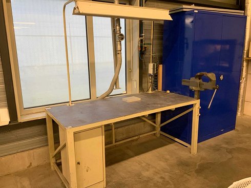 Equipado con iluminación fluorescente montada en la superficie Doble toma Vicio Armario base de acero con contenido Grosor de la encimera aprox. 4 cm Extracción no incluida |