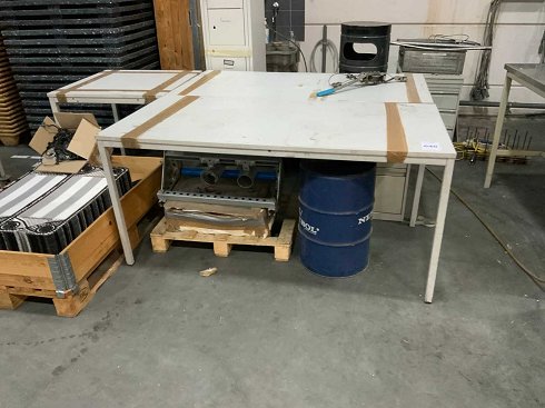 Consta de mesas de escritorio, armarios de taquilla, cajones y varios objetos de hierro