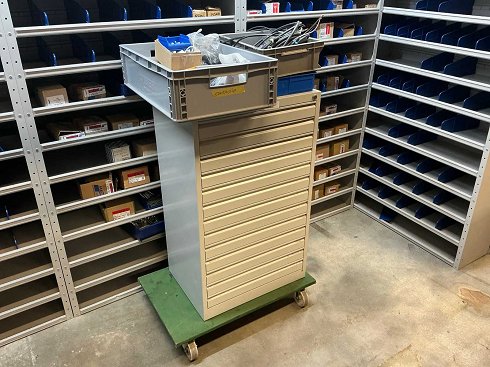 Equipado con 13 cajones con varios cables y enchufes y 3 cajas con contenido |