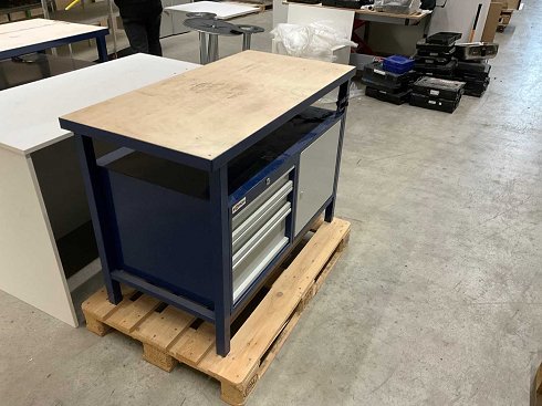 | Nombre | Banco de trabajo Mobiliario del taller, 3 cajones, 1 puerta, encimera maciza, cerradura con llave |