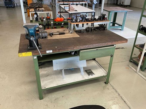 Con iluminación, tornillo de banco, 10x herramientas/soportes SK40, 1 cajón con taladro, herramientas manuales, escota, acero plano |