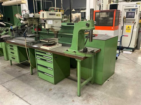 Con contenido, incluyendo prensa de palanca, estructura de banco de trabajo e iluminación de mesa, sin taladro de banco, adecuado para el Lote 42