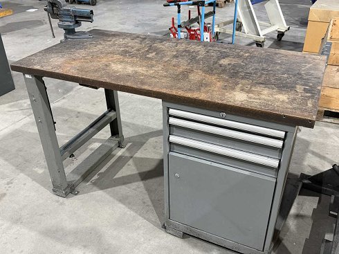 Ancho del banco de trabajo aproximadamente 1700 mm; equipado con prensa; Contenido: variedad de herramientas manuales, principalmente limas; Ver fotos para más detalles |