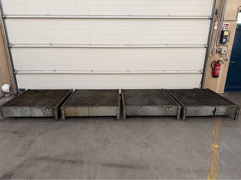 Tipo: Palé químico, volumen de recogida: 298 l, capacidad de carga: 1200 kg, para más detalles véanse fotos de las placas con nombre; Dimensiones cada una: 1310x1250x340mm |