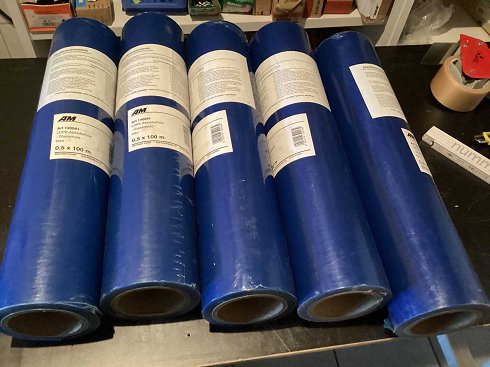 Nombre10 rollos de película protectora de vidrio autoadhesiva LDPE azul - película de enmascaramiento de vidrio de 0,5 m de ancho cada uno de 100 m de largo