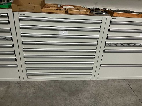 Alturas frontales de los cajones: 9 cajones con 100 mm de altura frontal / capacidad de carga por cajón: 200 kg |