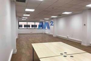 Alcobendas Localización: Alcobendas (Madrid) | Oficina de 75m² útiles en planta 1ª La oficina está diáfana, con falso techo tipo Amstrong, luminarias, tarima antiestática, a/c con bomba de calor independiente