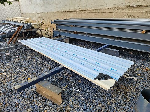 lote: Chapa ondulada H35 material: Chapas de acero corrugado (perfil H35) terminar: Pintado RAL 1015 (marfil claro) Grosor: 0,7 mm condición: Nuevo Superficie total: ~95,26 m² Dimensiones y cantidades de la hoja: - 6 piezas: 1100 x 4000 mm - 15 piezas: 1100 x 3100 mm - 7 piezas: 1100 x 2300 mm