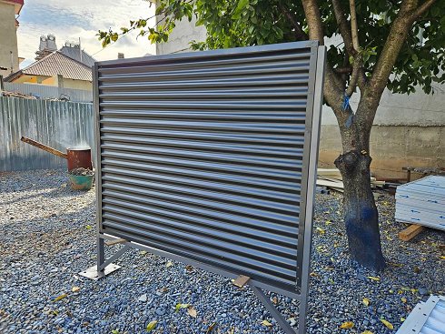 lote: Paneles de valla de acero material: Chapa de acero corrugado terminar: RAL 7016 (gris antracita), con lámina protectora Grosor: 0,8 mm Dimensiones del panel: 2000 x 1600 mm (ancho x alto) Cantidad: 15 paneles condición: Nuevo