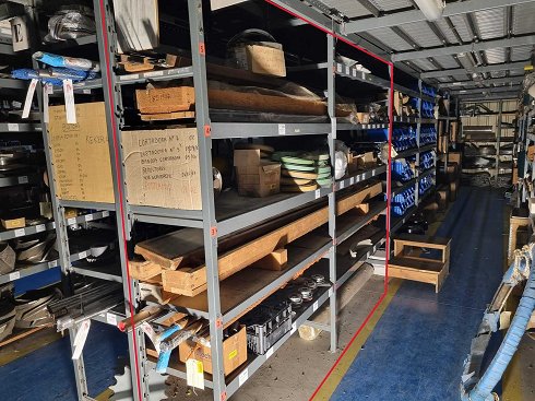 * Estantería no incluida: Únicamente se entregan los repuestos y materiales visibles en la estantería señalada en color rojo en la primera fotografía. La estructura metálica no forma parte del lote. Observaciones