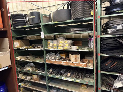* Estantería no incluida: Únicamente se entregan los repuestos y materiales visibles en la estantería señalada en color rojo en la primera fotografía. La estructura metálica no forma parte del lote. Observaciones