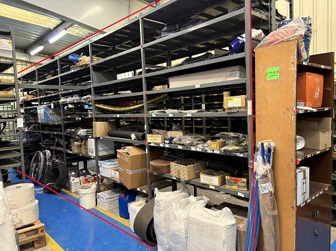 * Estantería no incluida: Únicamente se entregan los repuestos y materiales visibles en la estantería señalada en color rojo en la primera fotografía. La estructura metálica no forma parte del lote. Observaciones