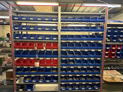 * Estantería no incluida: Únicamente se entregan los repuestos y materiales visibles en la estantería señalada en color rojo en la primera fotografía. La estructura metálica no forma parte del lote. Observaciones