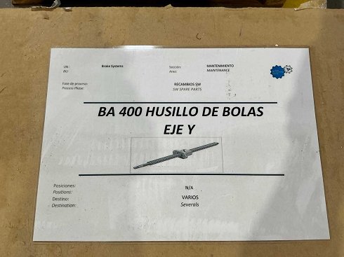 | Nombre | Husillo de bolas eje Y SW BA 400 |