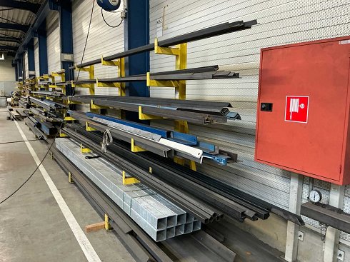 principalmente tubos y perfiles de esquina, incluyendo un portaequipajes de voladizo soldado de aproximadamente 396x136xH225cm |