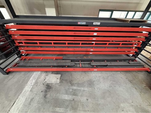 Contenido de la estantería: variedad de aceros estructurales de diferentes tamaños, longitudes y diseños; Para más detalles, véanse las fotos; Contenido total de siete cajones |