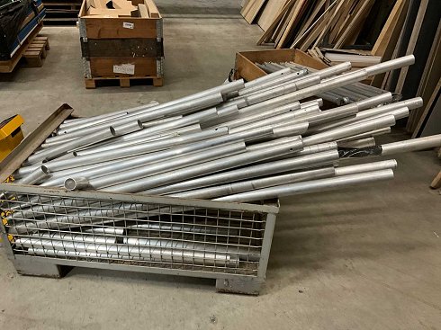 Lote mixto de Alupipes 50mm en caja de rejilla baja Longitudes entre 50 cm y 2 m Peso de la caja de celosía: aprox. 55 kg Total 167 kg |