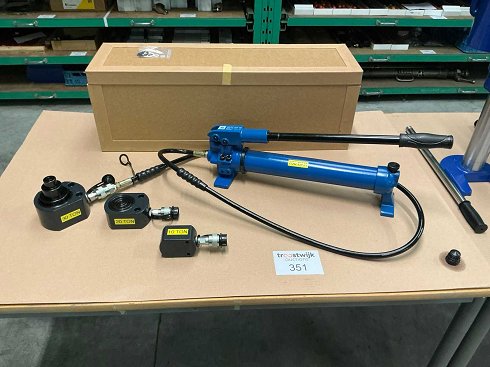Consiste en una bomba de potencia de 700 bar / incluyendo cilindro de doble acción baja con capacidad de 10 - 20 y 30 toneladas / sin usar y en embalaje original |