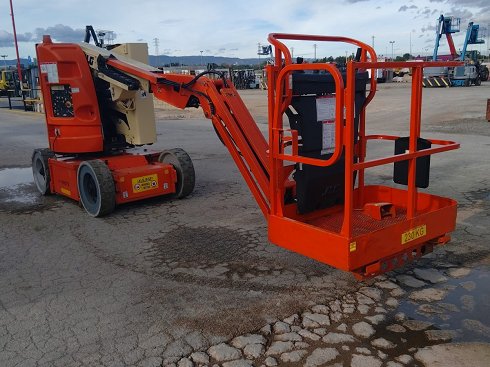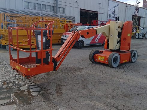 | Details | Plataforma articulada eléctrica JLG E300AP. Altura de elevación 12 metros y capacidad de carga 230 kg. Año de fabricación 2007. Caracteristicas