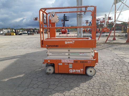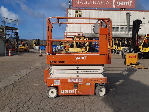 | Details | Plataforma tijera eléctrica SNORKEL S3219E. Altura de elevación 8 metros y capacidad de carga 250 Kg. Año de fabricación 2017. Caracteristicas