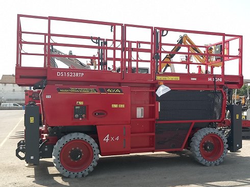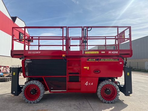 | Details | Plataforma tijera diésel MAGNI DS1523RTP. Altura de elevación 15 metros y capacidad de carga 680 Kg. Año de fabricación 2022. Caracteristicas